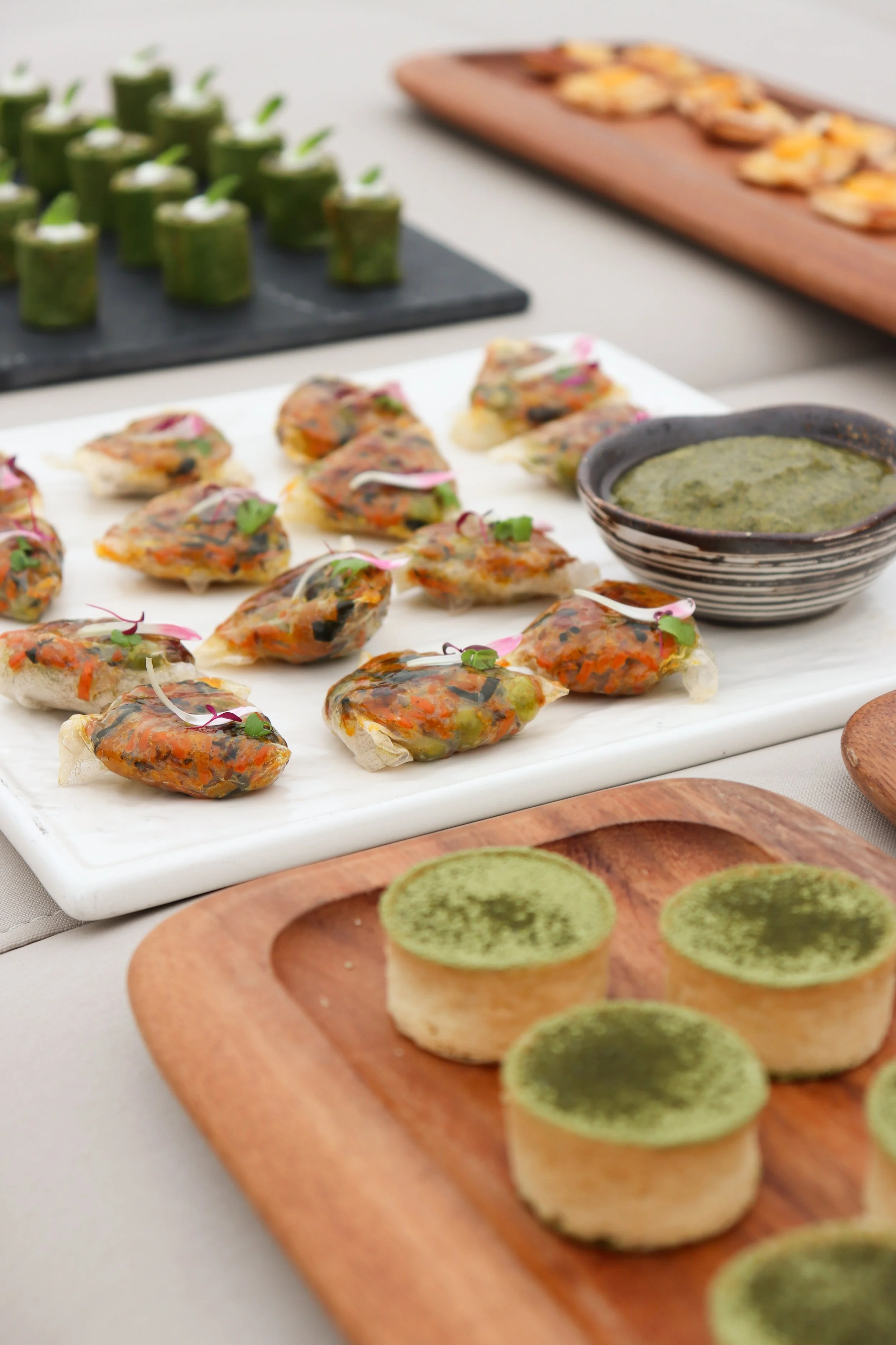 The offerings encompass a new selection of seasonal canapés including Relish’s Grilled Peach Brie Tartlet, Rice Paper Samosa with Mint Chutney Filling, Torched Teriyaki Salmon with Sesame Yoghurt and Lime, or even a Matcha Mochi Tartlet to satisfy those sweet cravings.